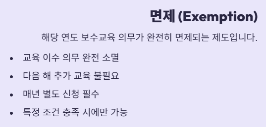 면제 대상 (교육 불필요) 유예 대상 (나중에 들어야 함)