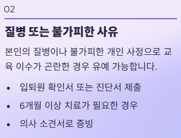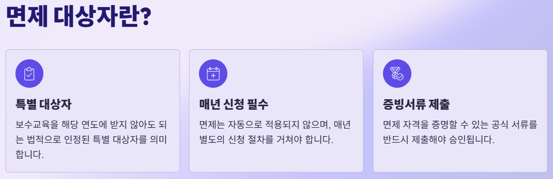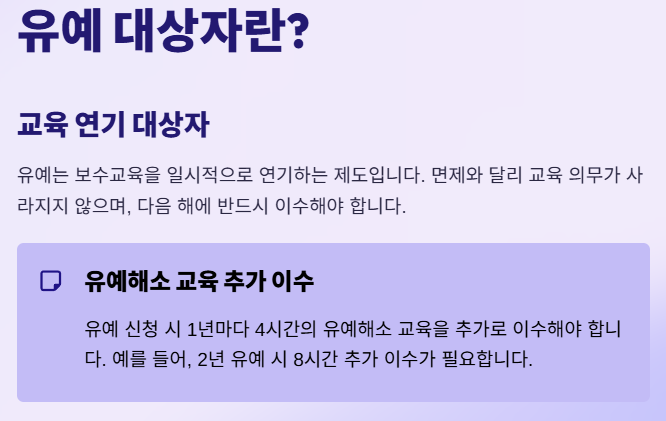 | 면제 대상 (교육 불필요) | 유예 대상 (나중에 들어야 함) |