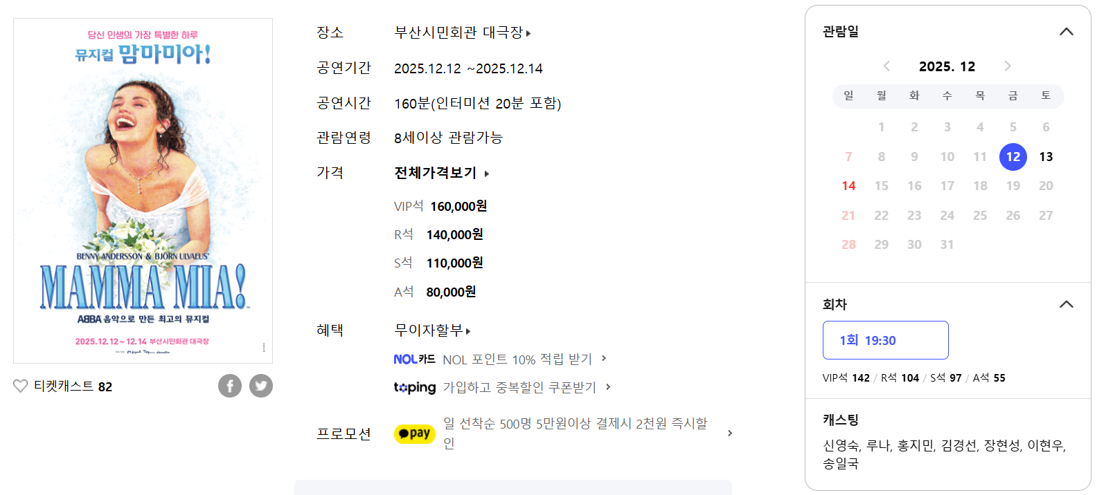 공연장(충무아트센터 등) 회원 할인, 청소년 동반 할인(30%) 등 다양한 제휴 할인이 존재할 수 있으니, 예매 상세 페이지의 할인 정보를 꼼꼼히 확인하는 것이 중요합니다.