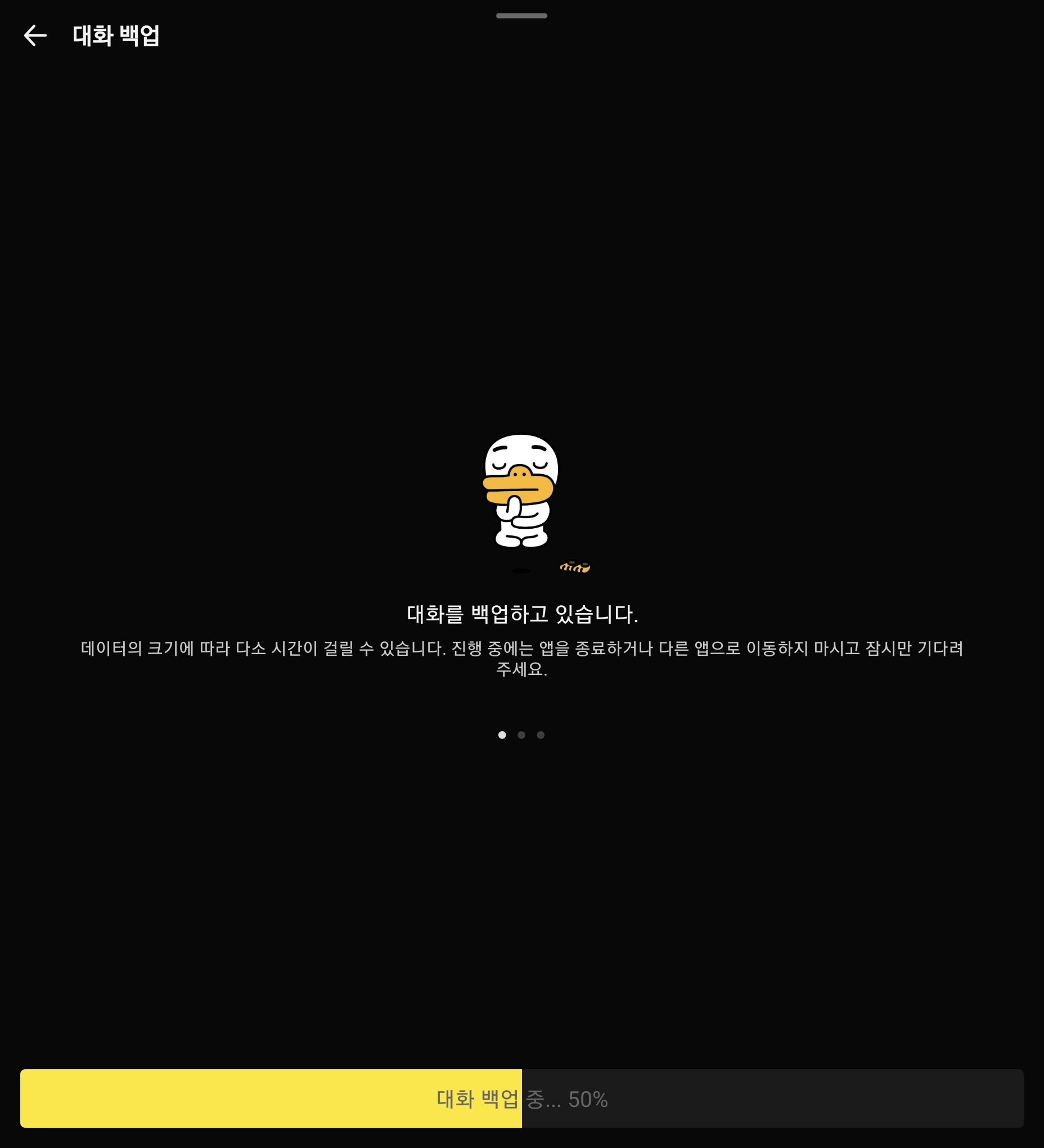 - 카카오톡 실행 → 더보기(… 메뉴) → 설정 → 채팅 → 대화 백업