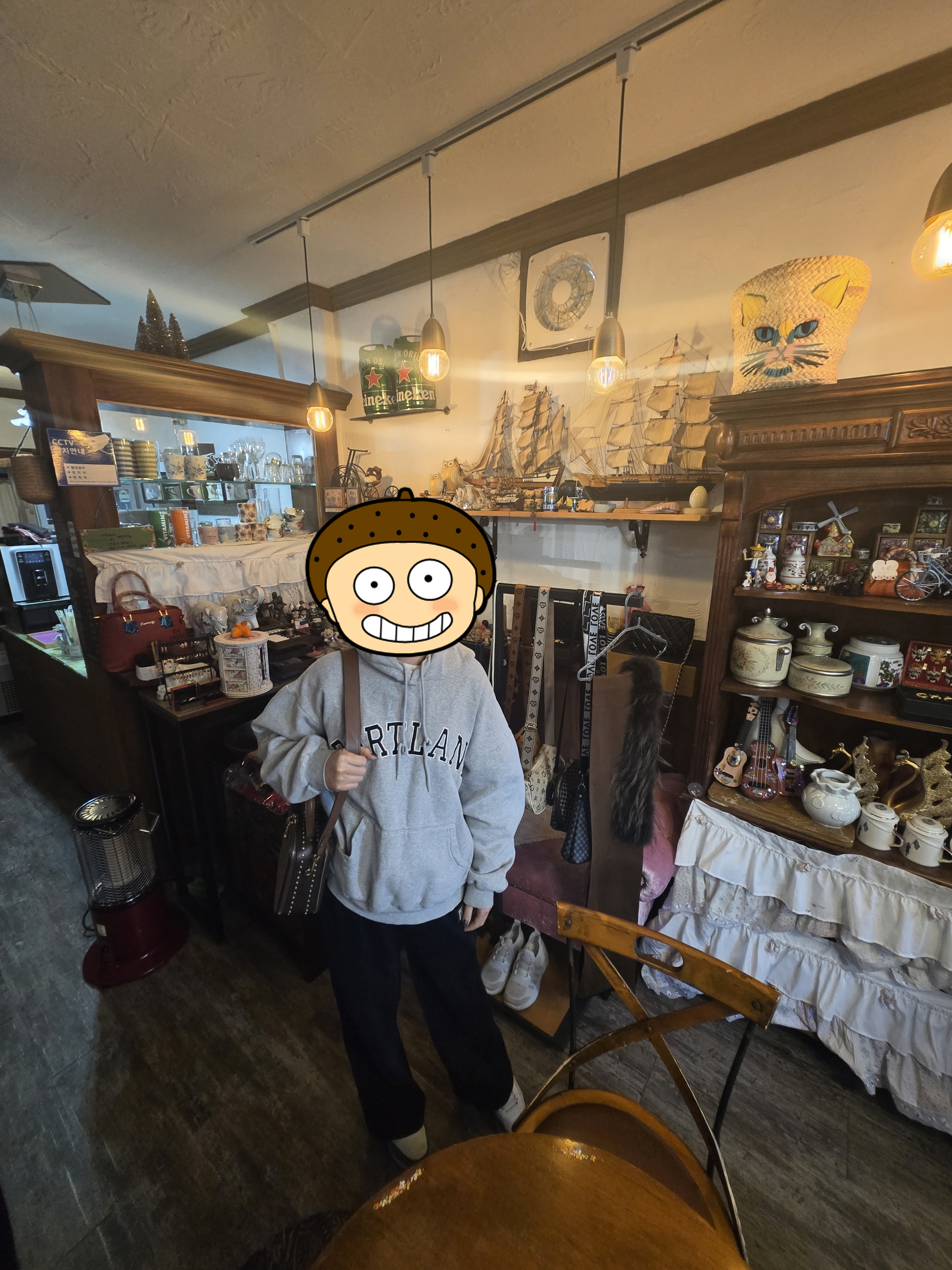구제샵 특유의 빈티지한 감성이 물씬 풍기는 인테리어입니다. 숨은공간이 있어요