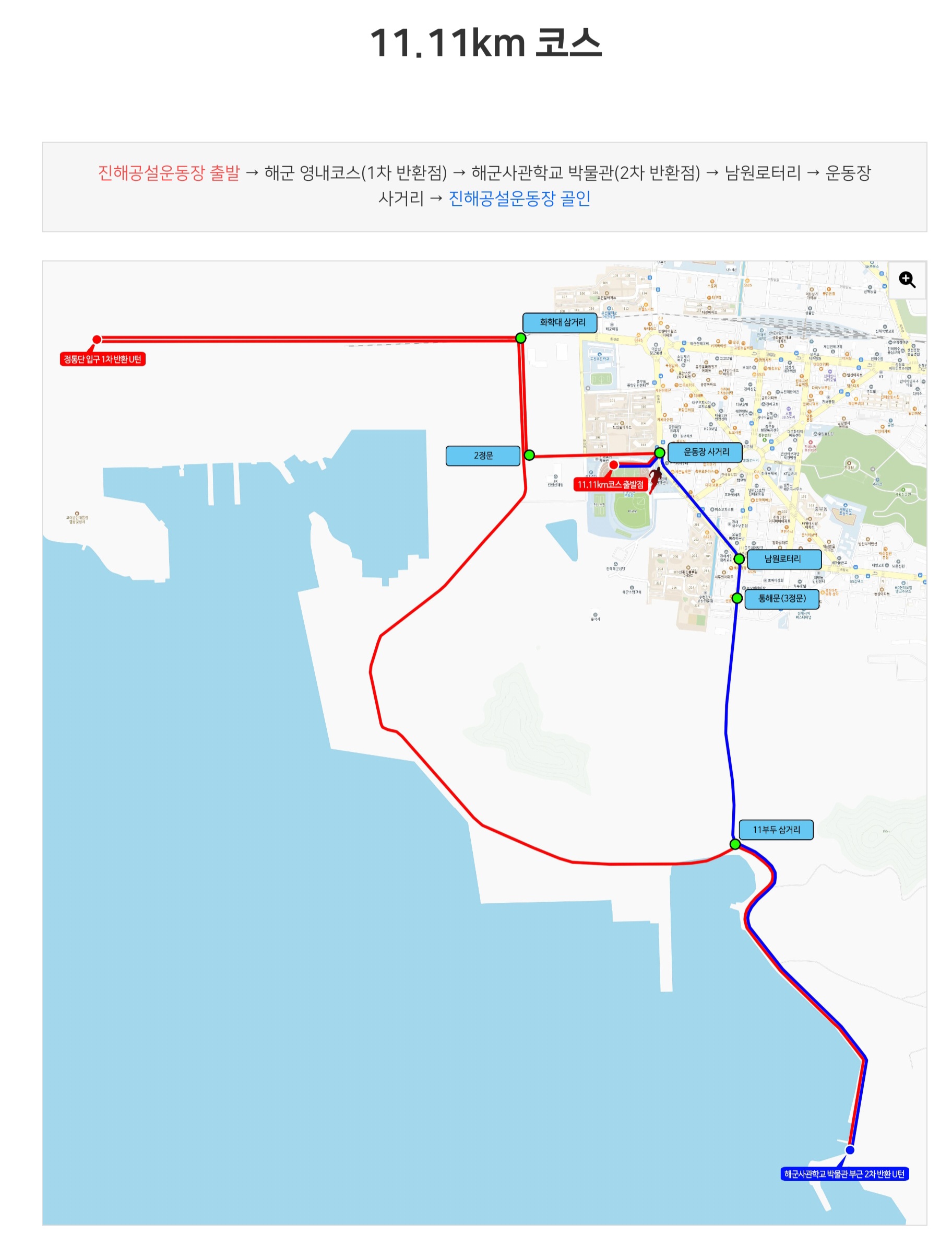 ① 11.11km (해군창설 80주년 기념 특별코스)