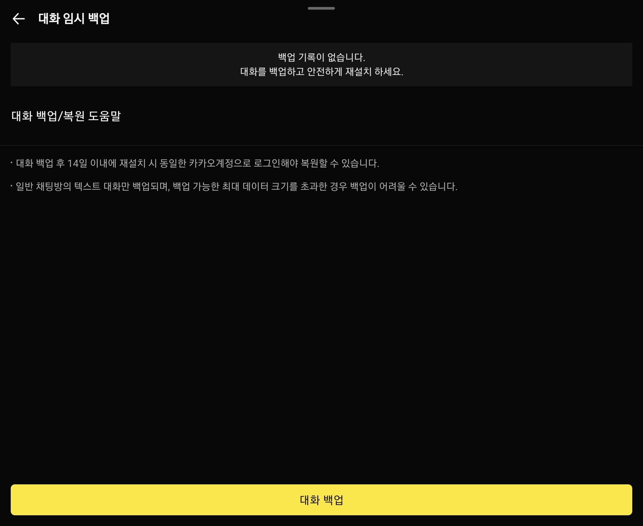 구버전 설치 전 반드시 대화와 미디어를 백업하세요. 백업 방법(카카오톡 기준):