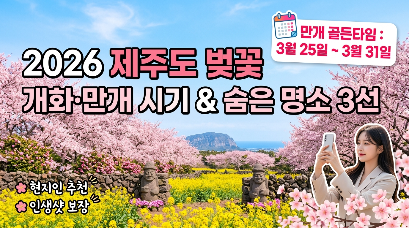 제주도 벚꽃은 육지와 달라서 바람이 한 번 세게 불면 하룻밤 새 다 떨어져 버립니다. 그래서 날짜를 맞추는 게 그 무엇보다 중요하죠. 올해는 여러분이 저 같은 뼈아픈 실수를 겪지 않으시도록, 제주 현지인 지인들을 달달 볶아 얻어낸 '진짜 만개 타이밍'과 관광객은 절대 모르는 '비밀 명소'들을 속 시원히 풀어드리겠습니다.